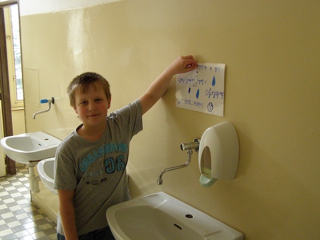 Na naší škole máme zatím pouze klasické vodovodní baterie a toalety, které žákům neumožňují důsledně šetřit vodou. Dosavadní opatření, která žáci provedli – informační cedule vyzývající ostatní žáky utahovat kohoutky vnímají jako účinné, ale nedostatečné. Chtějí vyměnit na každém záchodě alespoň jednu klasickou vodovodní baterií za úspornou a zútulnit prostředí WC tak, aby se tam ostatním žákům líbilo