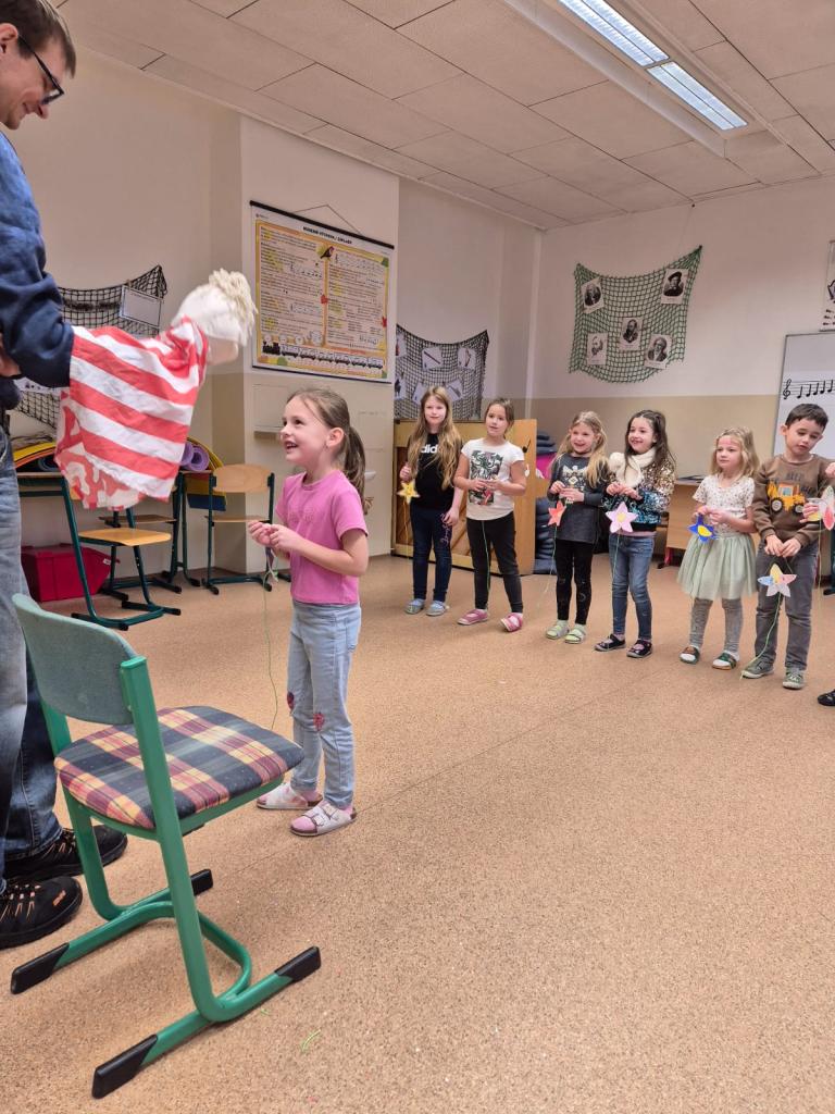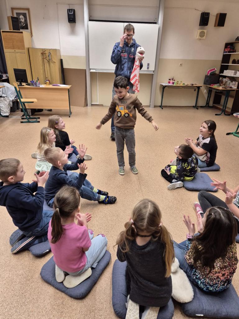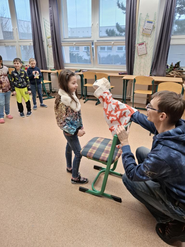 29.1. žáci poznali různé druhy loutek, vyzkoušeli si je a viděli loutkoherce "v akci". Vyrobili si také svoji loutku.