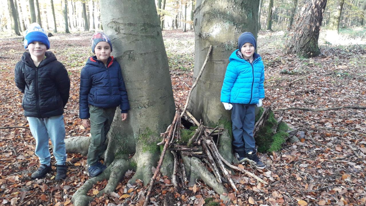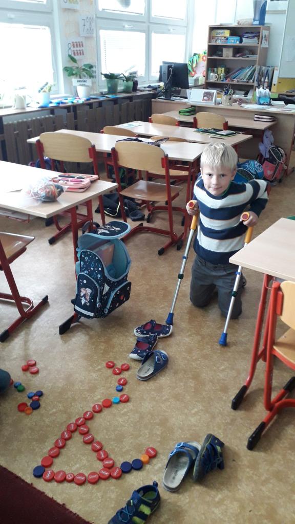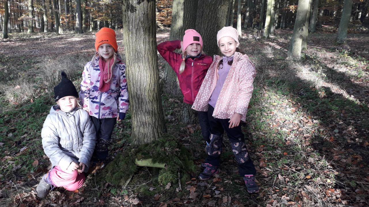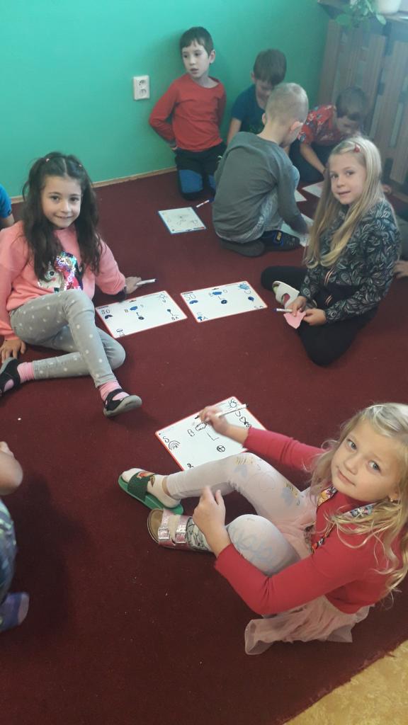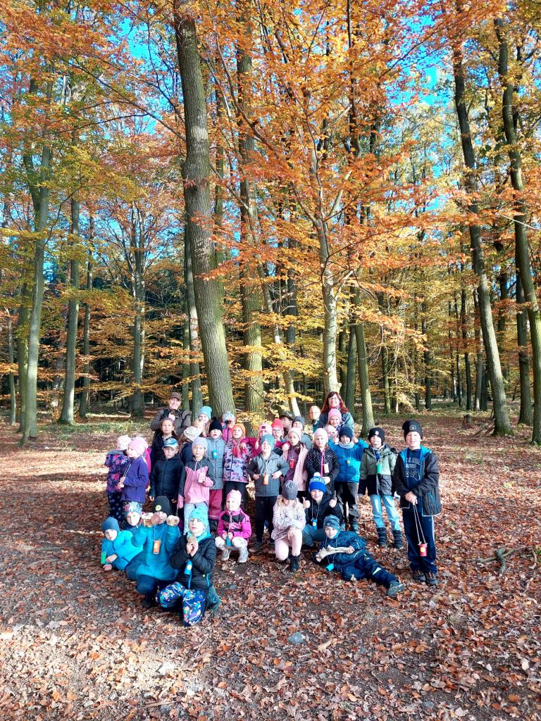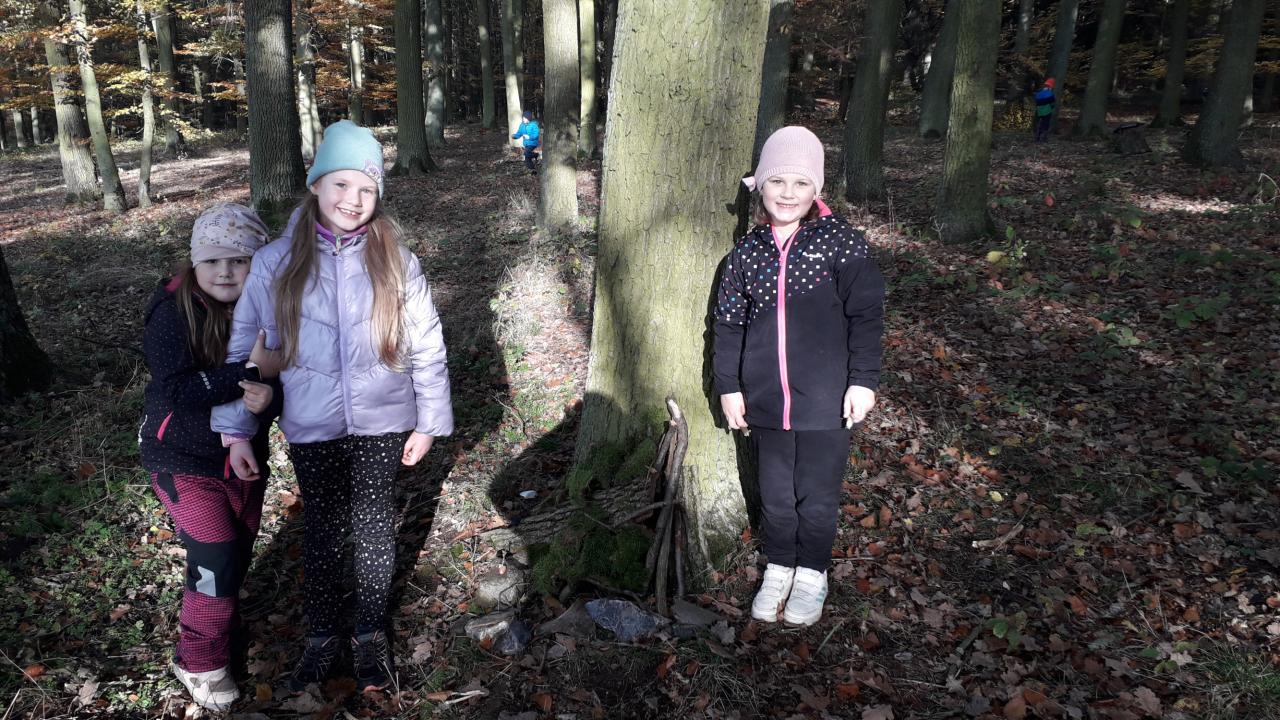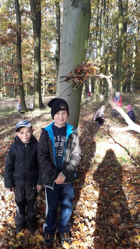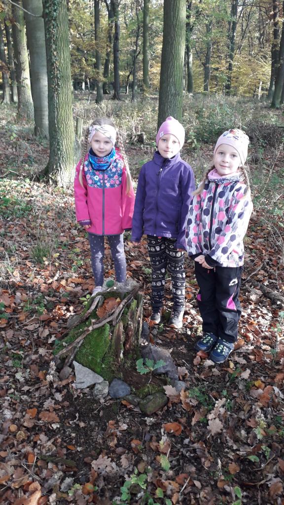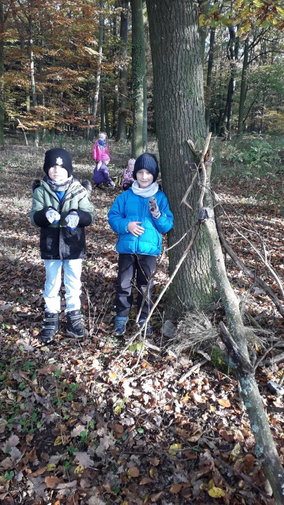 V říjnu jsme si hráli s písmenky, procvičovali prostorovou představivost, měli jsme projektový den zaměřený na školství v jiných zemích (vyzkoušeli jsme si v tělocvičně, jak obtížná cesta do školy může být) a vydali jsme se s ponožkami na podzimní výpravu do lesa, kde jsme postavili skřítkům domečky