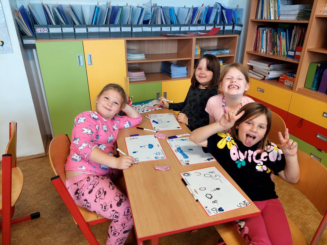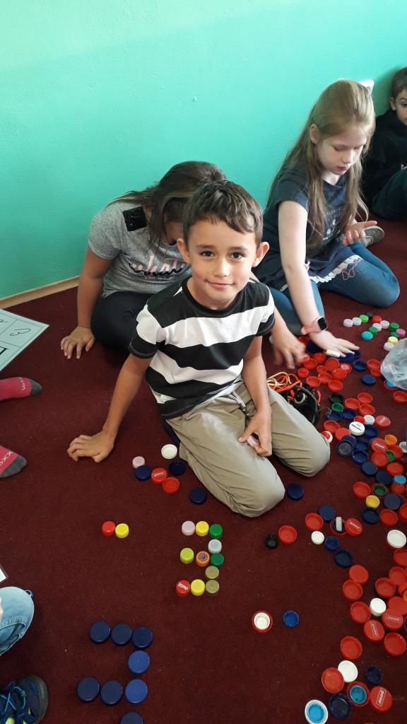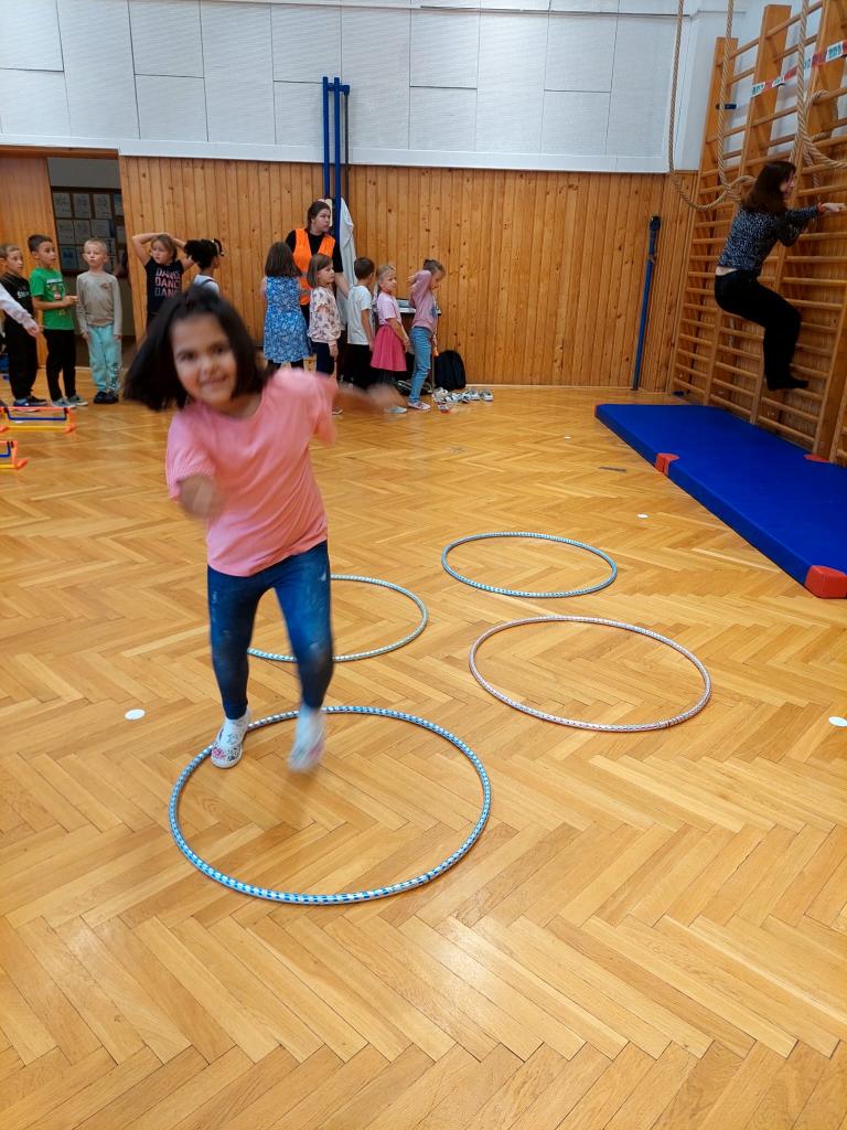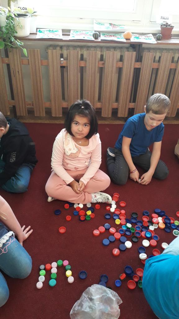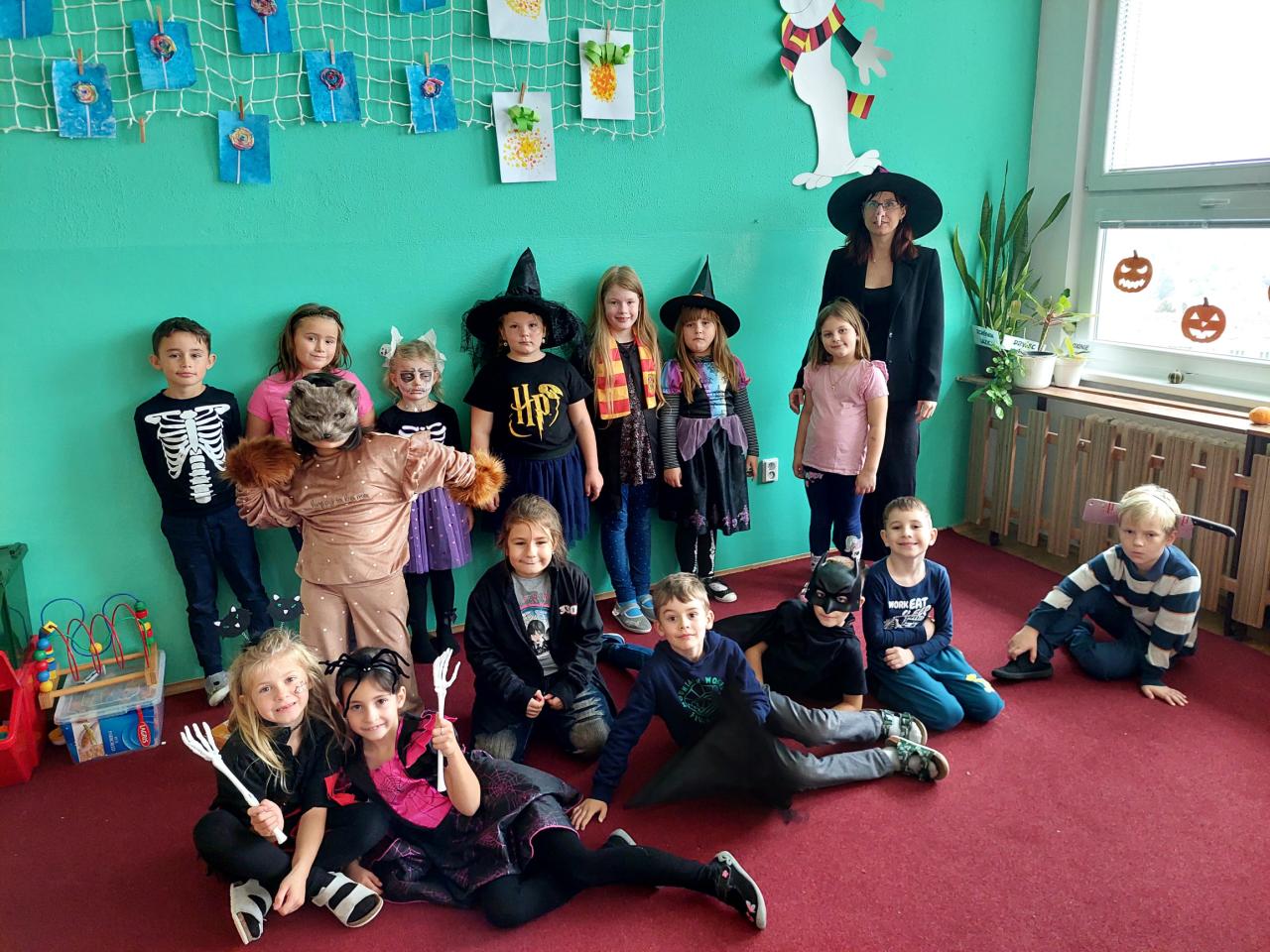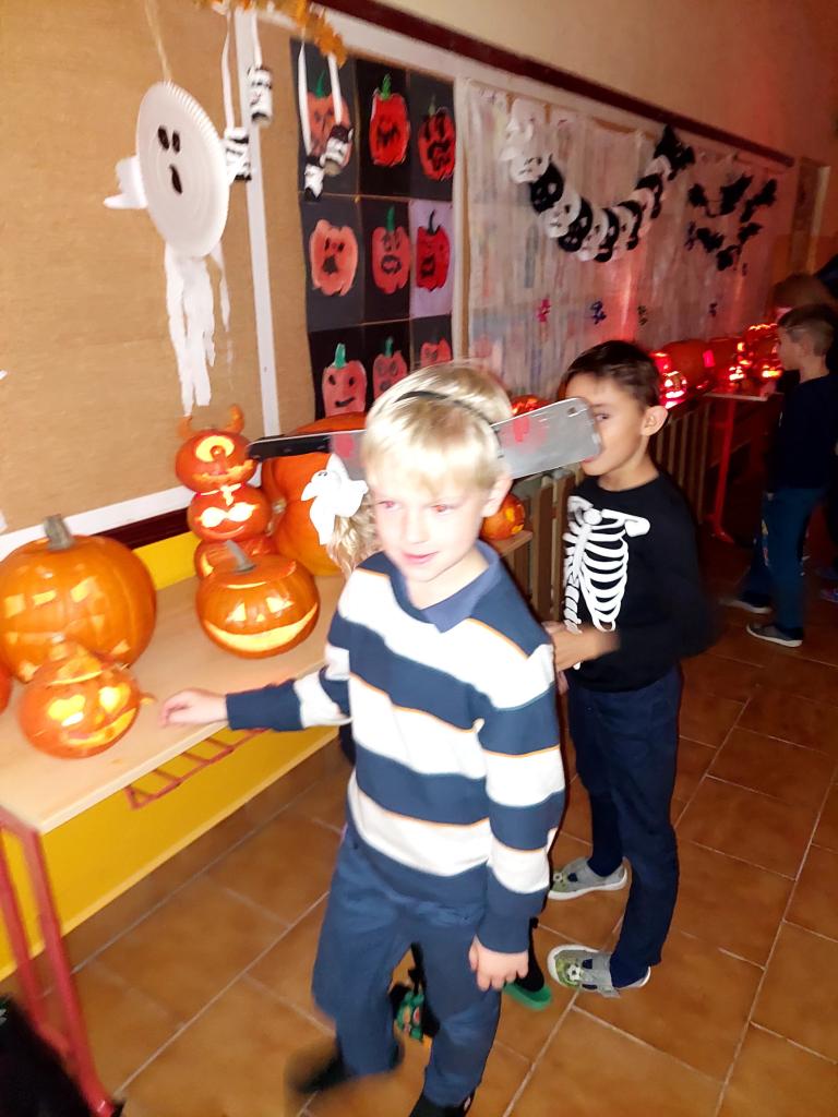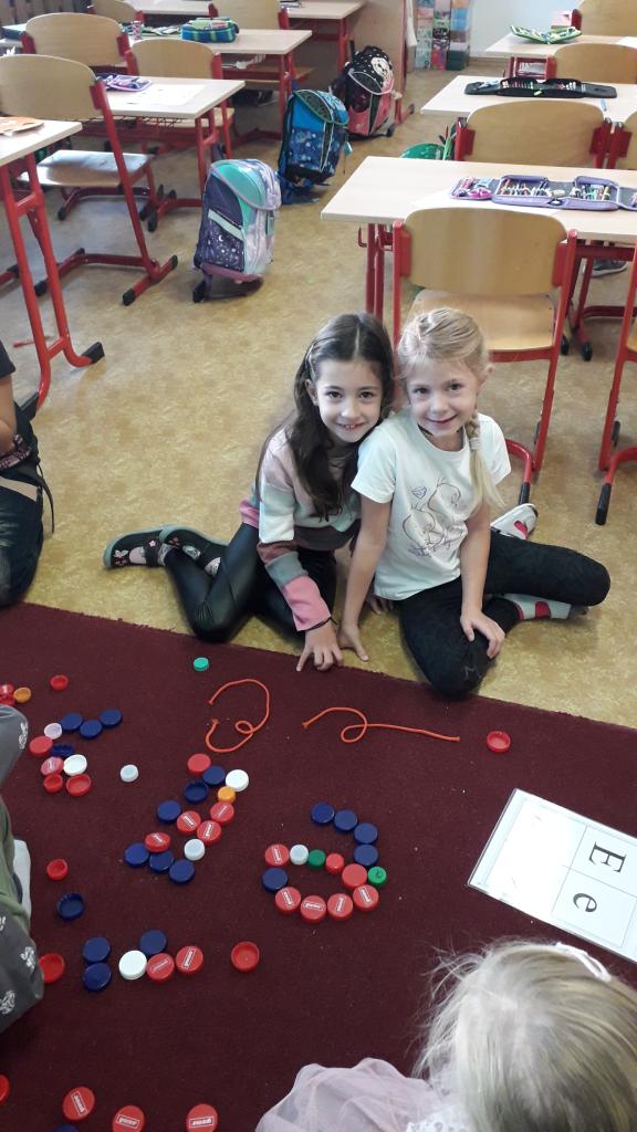 V říjnu jsme si hráli s písmenky, procvičovali prostorovou představivost, měli jsme projektový den zaměřený na školství v jiných zemích (vyzkoušeli jsme si v tělocvičně, jak obtížná cesta do školy může být) a vydali jsme se s ponožkami na podzimní výpravu do lesa, kde jsme postavili skřítkům domečky