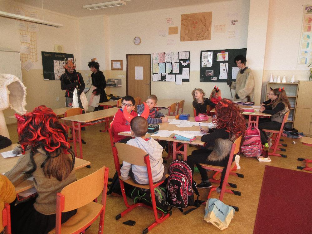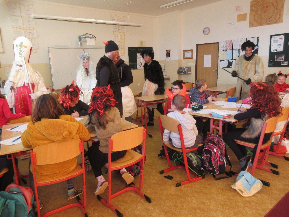 5.12.2018 se na 1. stupni konala již tradičně čertí škola. I čtvrťáky navštívil Mikuláš s andělem a čerty a děti obdržely odměnu ve formě zdravých (i méně zdravých) sladkostí. Žáci také dopoledne řešili „čertí“ úlohy a četli o svatém Mikuláši.