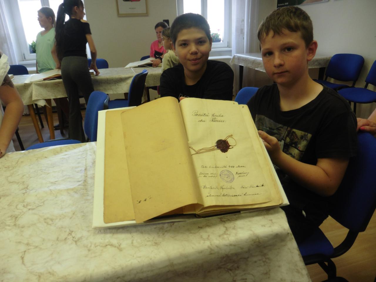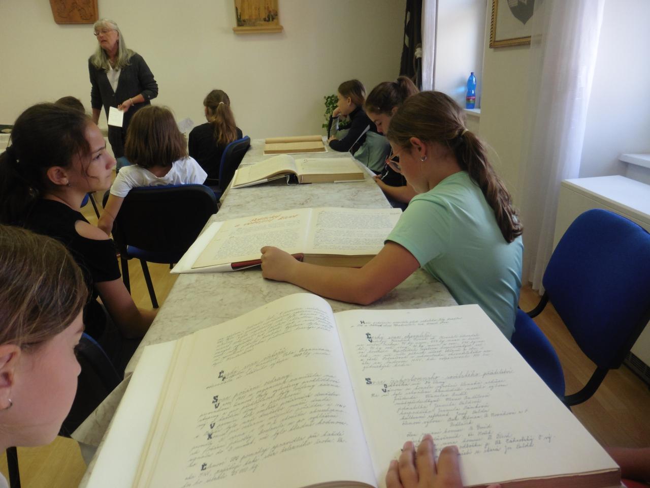 Na úřadu městyse byly vystaveny kroniky z archívu Beroun, využili jsme této příležitosti, přišla i paní kronikářka.